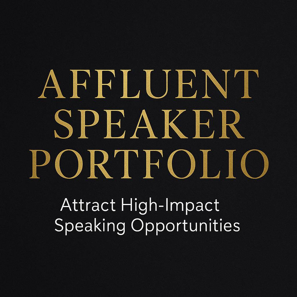 Elevate your personal brand and position yourself as the speaker event organizers can’t ignore. The Affluent Speaker Portfolio helps you define your identity, refine your offer, and present your expertise with polish and professionalism. Perfect for speakers who are ready to get noticed, get booked, and get paid.