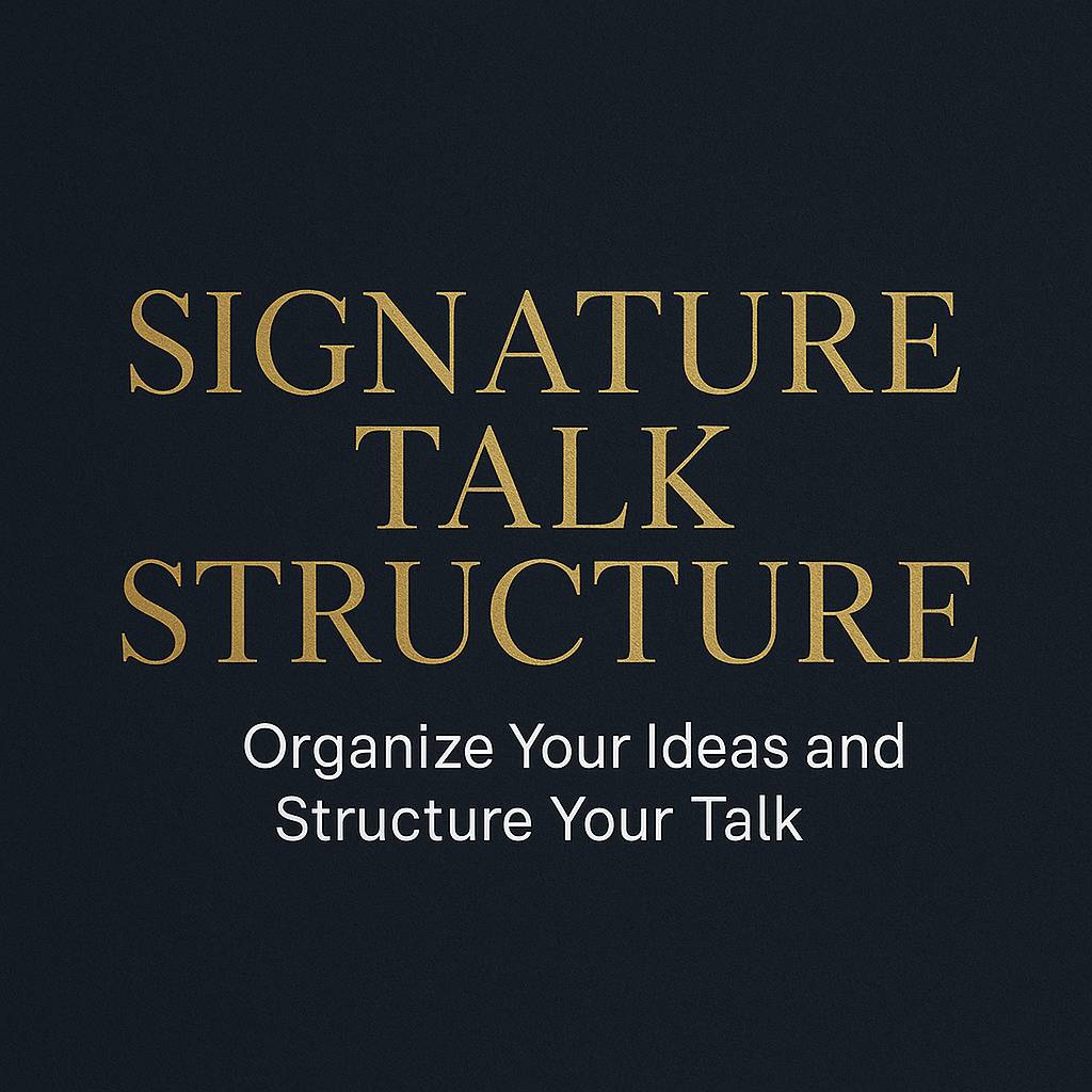 Say goodbye to scattered ideas and disconnected stories. Signature Talk Structure gives you the clarity, flow, and framework to deliver a talk that captivates and converts.